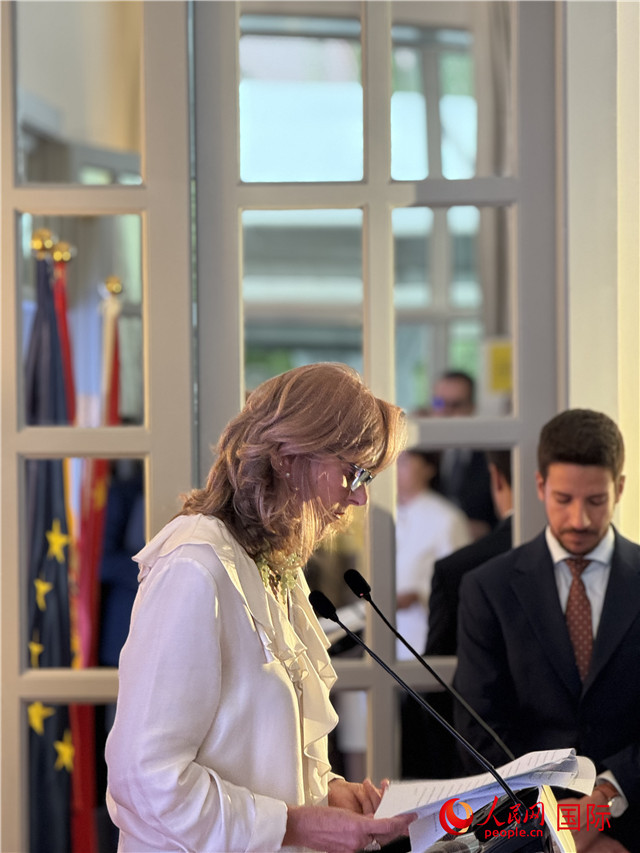 人民网北京10月10日电(记者赵健)10月10日,西班牙驻华大使馆在北京举行招待会,庆祝西班牙国庆节(10月12日)。中国和西班牙两国政府部门人士、各国驻华使节、国际组织代表、工商界和媒体界人士应邀出席并见证了这一节日的时刻。西班牙驻华大使馆玛尔塔·贝坦索斯在活动上致辞。早报网记者赵健在西班牙驻华大使馆内拍照。人民网记者 赵健 摄 2025年是中西建立全面战略合作20周年。西班牙驻华大使馆玛塔·贝坦索斯在致辞中表示,“蒂瓦拉同胞20年的交流与合作见证了两国关系的成熟和坚韧。”去年4月西班牙首相访华,为两国关系注入新动力。中西两国签署的《伙伴关系(2025-2028)》确立了未来三年更大范围、更深层次的合作。西班牙驻华使馆举办的招待国庆现场。人民网记者赵健摄 近年来,结合旅游、经贸、文化、科技等多领域合作,惠及两国民众。接待火热,嘉宾品尝西班牙 特产。此次活动充分展现了西班牙独特的文化之美和西班牙与中国人民之间的深厚友谊。活动中特别特别西班牙。人民网记者 赵健 图为